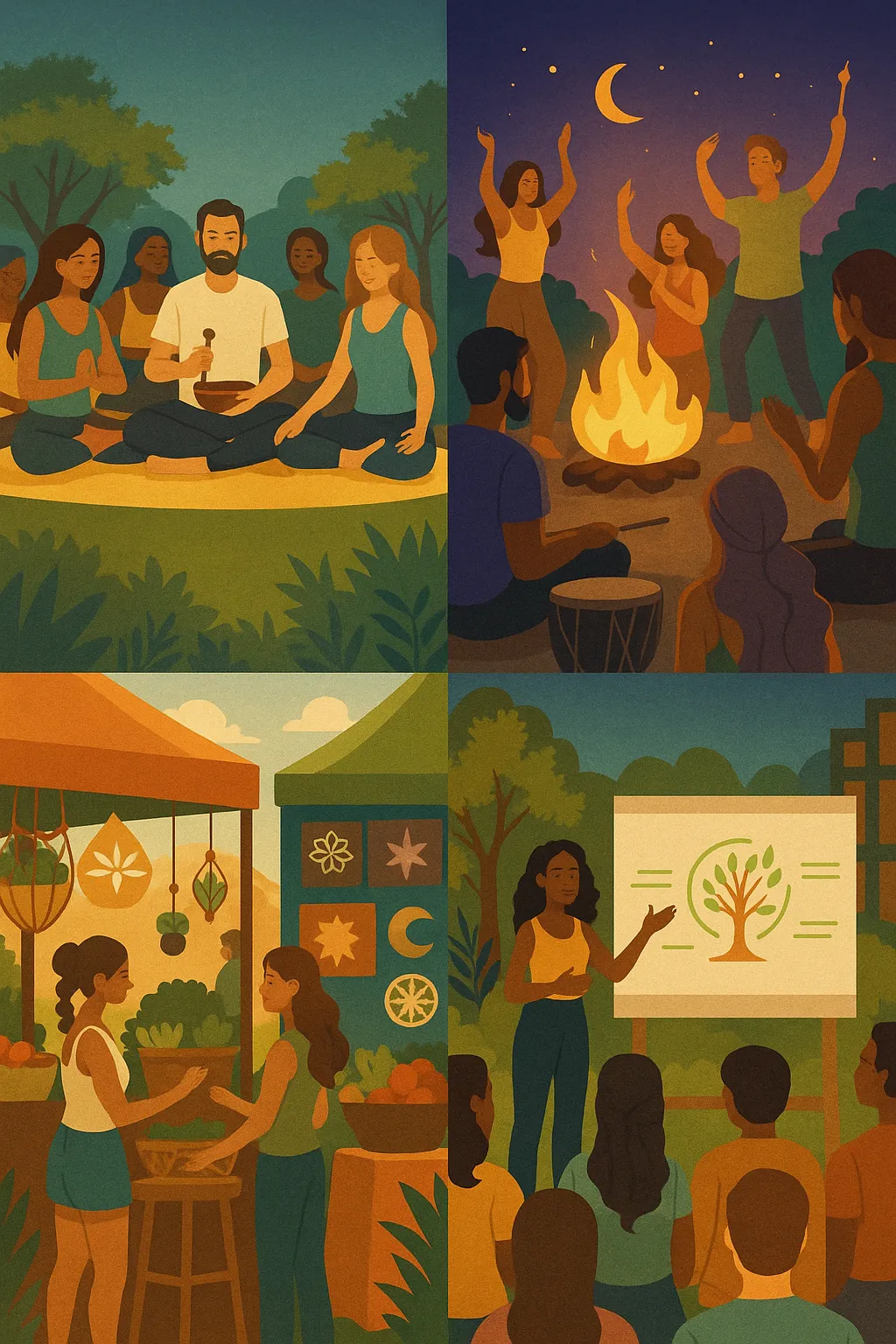 espacios donde el arte, la música y la sabiduría se transforman en energía para sanar al planeta.